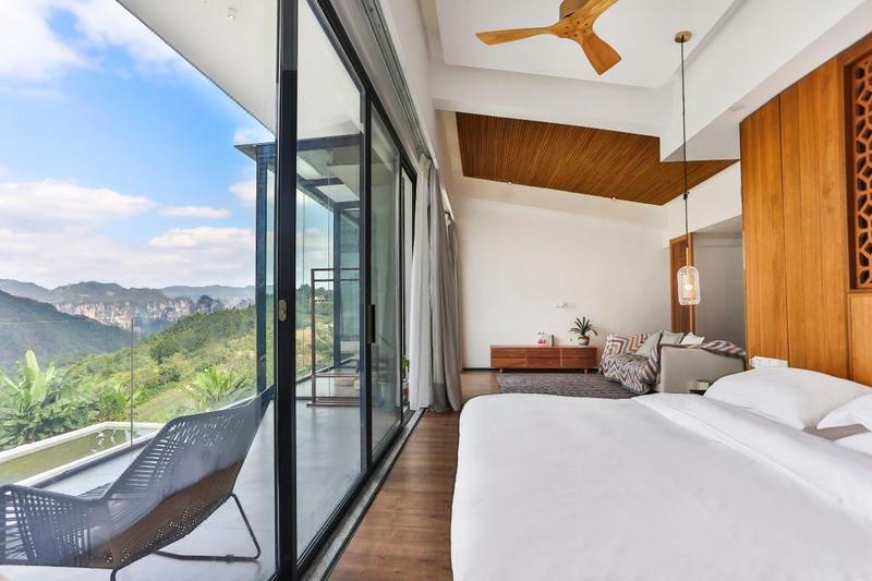 "张家界网红民宿“璞舍民宿”,位于武陵源区协合乡龙尾巴村,这里依山伴水,有峡谷有梯田,还有云海; 这里与张家界国家森林公园互为邻居,还有免费的徒步登山路线; 这里有中国有价值的高含量负离子空气,还能品尝到清凉透骨的山泉。我们的房间配置: 星级床垫及康乃馨布草,房间配置豪华全自动智能马桶,箭牌卫浴,无敌景观套房拥有按摩大浴缸Bose/JBL蓝牙音箱,一次性沐浴用品全套,免费拖鞋,浴袍,热水壶,大功率吹风机,只为让你感受山间的美妙,舒舒服服的睡个好觉。我们的特色: 我们的每个房间都有无敌的山景,躺在床上就可以远眺张家界国家森林公园的山景,民宿配备有一个全日制特色餐厅,多功能影音室以及茶室,和一个户外平台小清吧,可以相聚在此看大电影;晚上相约小酒吧,在乡间看星星,听音乐,自助烧烤,喝酒聊聊,无疑也是一种美事。我们二期还打造了一个峡谷无边际无敌景观泳池,清爽一夏,网红打卡。 我们还有一个山景SPA房,看着山景,做着SPA,无疑是一种享受。老板情怀:老板小赫,在广州10年,热爱民宿行业,喜欢旅行,结交好友,16年回家创业,带着梦想,带着情怀,开启璞舍高端度假民宿,在享受张家界的仙境美景同时,可以慢下来,感受张家界不一样的美,也愿结识有缘的你。我们的服务:我们致力于细致而贴心的管家服务;一切的服务都是有温度,让你感觉就像回到了远方的故乡,在这里,一切都慢下来,山中歇一日 世上已千年。"