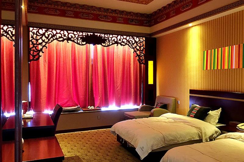 香格里拉普达措悠幽庄园位于普达措国家公园内洛茸村腹地,它与于山水为邻、牛羊相伴,融天地之灵气,吸自然之精华,其浓郁的藏式装修风格与古朴村庄融为一体,朴实、静谧、和谐,没有耀眼的绚丽,远离城市的喧嚣与浮躁,让你享受其中,回归自然。早晨伴着鸟儿的歌声醒来,看着窗外牛羊在草甸漫步。日光倾城,湖面升起薄薄轻烟,像一层纱幔,犹如少女眼帘低垂的脸,娇羞可爱。伸个懒腰,呼吸着城市里无法比及的空气,坐在落地窗前:农田、草甸、湖泊、森林、酥油花...这一刻都是你的,在这里放眼即景,欲与成仙,找回生命初源的纯净,放空、自在、随性。