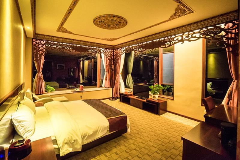 香格里拉普达措悠幽庄园位于普达措国家公园内洛茸村腹地,它与于山水为邻、牛羊相伴,融天地之灵气,吸自然之精华,其浓郁的藏式装修风格与古朴村庄融为一体,朴实、静谧、和谐,没有耀眼的绚丽,远离城市的喧嚣与浮躁,让你享受其中,回归自然。早晨伴着鸟儿的歌声醒来,看着窗外牛羊在草甸漫步。日光倾城,湖面升起薄薄轻烟,像一层纱幔,犹如少女眼帘低垂的脸,娇羞可爱。伸个懒腰,呼吸着城市里无法比及的空气,坐在落地窗前:农田、草甸、湖泊、森林、酥油花...这一刻都是你的,在这里放眼即景,欲与成仙,找回生命初源的纯净,放空、自在、随性。