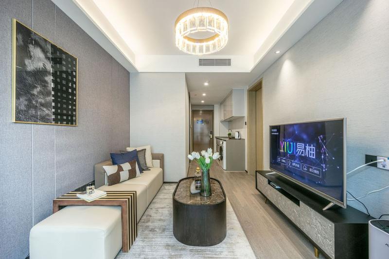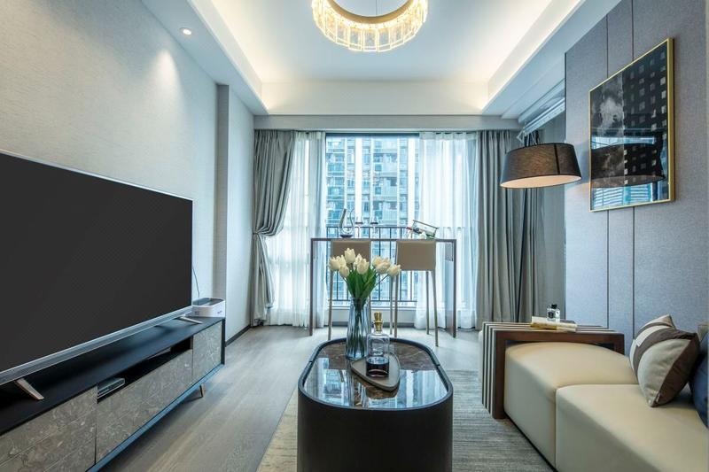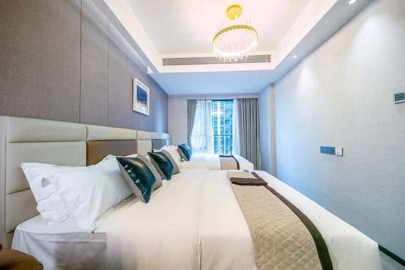 公寓坐落于福田区繁华的华强北商业中心,楼下有CICCI MALL商场以及周边有众多大型商业购物广场,步行可到明通美妆市场、达茂业百货、赛格广场、华强北九方购物中心、女人世界等,紧邻2号线-燕南地铁站A出口,1号线-科学馆C出口,地铁7号线-华强北,地铁3号线-通新岭。 公寓配套全新高端酒店装修配置,拥有舒适的商务环境,高品质的床上用品、LED液晶电视、空气净化器、冰箱和多功能灭菌洗衣机等家用电器一应具全,客房覆盖独立的高速光纤网络,居家出差旅行者优选。公寓闹中取静,设施齐全,环境舒适、整洁,为宾客提供身心放松的休憩地。
