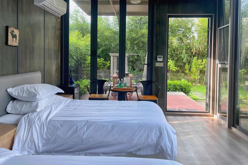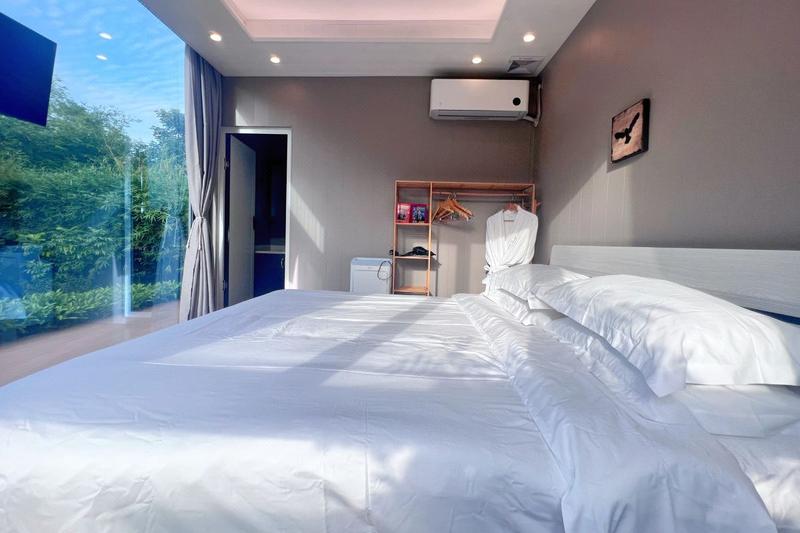 清远米墅・稻田野舍,位于素有“中国温泉之乡”美誉的清远市清新区三坑镇,坐拥绿水青山。交通便利,距清远市区约30分钟车程,距广州约25分钟高铁车程,距深圳约1小时高铁车程。附近50分钟车程内可到达古龙峡、黄腾峡漂流景区。民宿以稻田为景观特色,创新运用自主研发生产的装配式移动建筑,快速建成庭院式、别墅式、船屋式等各类客房,每套客房都带有独立院落,每个院落都配有温泉泡池。设有体验式耕种区、萌宠互动区、鱼塘垂钓区、百果园、蔬菜园、儿童乐园、农家餐厅、培训中心等配套设施,配套面积达10000平方米。 米墅・稻田野舍是一处真正“望得见山、看得见水、守得住原乡生活、留得住乡愁”的宝藏精品乡村民宿,在田间,为城市旅居客打造高品质的原乡生活方式。 无论是亲子度假、朋友出游、爱人相守,还是公司团建,在这里都能找到专属乐趣。摘菜捕鱼,亲历乡间野趣;骑行踏青,留下相伴足迹;喂养萌宠,体验治愈时光;户外烧烤、篝火晚会,感受人间烟火;星空下泡温泉,享受独处浪漫。