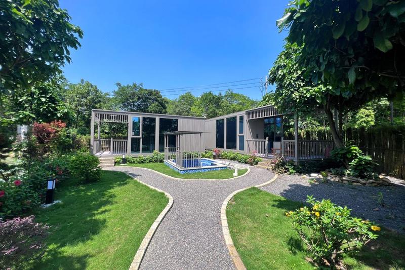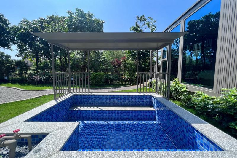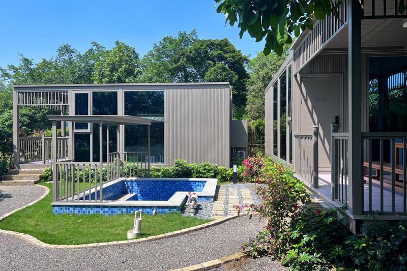 清远米墅・稻田野舍,位于素有“中国温泉之乡”美誉的清远市清新区三坑镇,坐拥绿水青山。交通便利,距清远市区约30分钟车程,距广州约25分钟高铁车程,距深圳约1小时高铁车程。附近50分钟车程内可到达古龙峡、黄腾峡漂流景区。民宿以稻田为景观特色,创新运用自主研发生产的装配式移动建筑,快速建成庭院式、别墅式、船屋式等各类客房,每套客房都带有独立院落,每个院落都配有温泉泡池。设有体验式耕种区、萌宠互动区、鱼塘垂钓区、百果园、蔬菜园、儿童乐园、农家餐厅、培训中心等配套设施,配套面积达10000平方米。 米墅・稻田野舍是一处真正“望得见山、看得见水、守得住原乡生活、留得住乡愁”的宝藏精品乡村民宿,在田间,为城市旅居客打造高品质的原乡生活方式。 无论是亲子度假、朋友出游、爱人相守,还是公司团建,在这里都能找到专属乐趣。摘菜捕鱼,亲历乡间野趣;骑行踏青,留下相伴足迹;喂养萌宠,体验治愈时光;户外烧烤、篝火晚会,感受人间烟火;星空下泡温泉,享受独处浪漫。