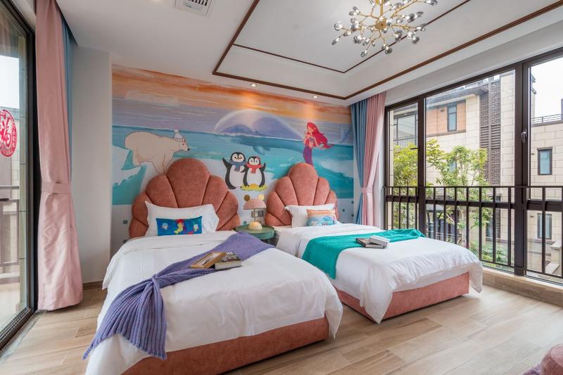 酒店位于佛山高明美的鹭湖森林度假区内,这片净土凭借着原生的天然大氧吧吸引了成群白鹭在此居住,让度假村在清新的空气下欣赏湖中央一行白鹭上青天或鹭群依夕阳归来、更有安纳希小镇、爱丽丝仙境花海、探索王国、越野车基地、国际路亚基地、真人CS等景点满足多种度假需求。别墅以沉浸式主题体验为主题,从森林主题、海洋主题、空中主题为延伸,让消费者直观体验空中主题,沉浸其中所带来的寓教于乐体验感,所见所感皆为乐趣。别墅提供优质贴心的管家服务,配套厨房厨具齐全、麻将、私家泡池或花园,并提供儿童帐篷、儿童阅读区等家庭亲子度假诸多元素,共享美好时光。当夜幕降临,在花园泡上一壶清茶或陪孩子嬉戏玩闹,在度假中养心蓄锐。