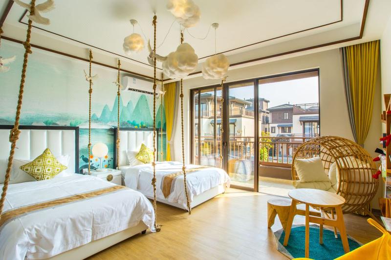 酒店位于佛山高明美的鹭湖森林度假区内,这片净土凭借着原生的天然大氧吧吸引了成群白鹭在此居住,让度假村在清新的空气下欣赏湖中央一行白鹭上青天或鹭群依夕阳归来、更有安纳希小镇、爱丽丝仙境花海、探索王国、越野车基地、国际路亚基地、真人CS等景点满足多种度假需求。别墅以沉浸式主题体验为主题,从森林主题、海洋主题、空中主题为延伸,让消费者直观体验空中主题,沉浸其中所带来的寓教于乐体验感,所见所感皆为乐趣。别墅提供优质贴心的管家服务,配套厨房厨具齐全、麻将、私家泡池或花园,并提供儿童帐篷、儿童阅读区等家庭亲子度假诸多元素,共享美好时光。当夜幕降临,在花园泡上一壶清茶或陪孩子嬉戏玩闹,在度假中养心蓄锐。