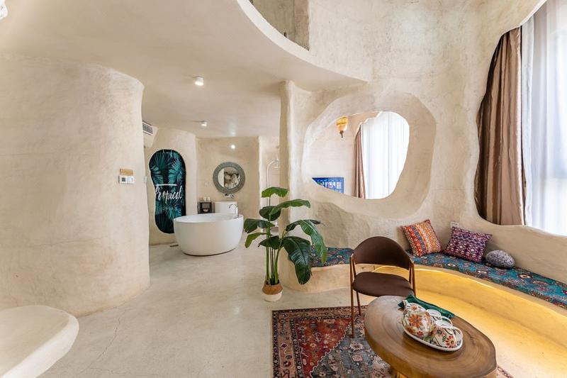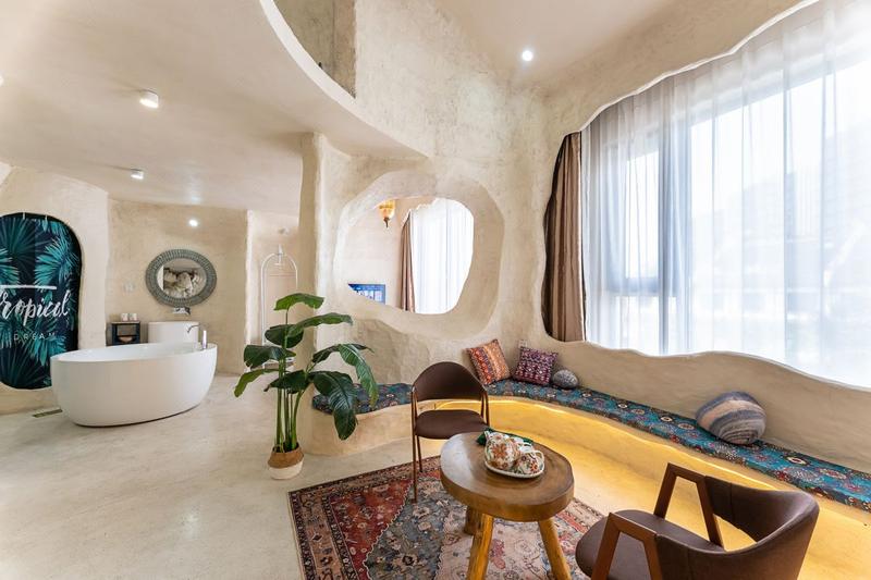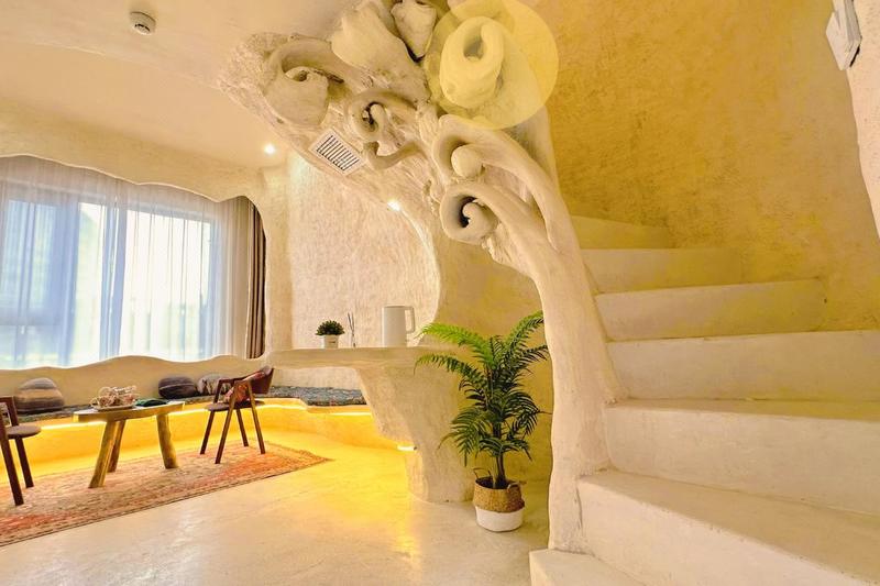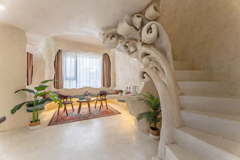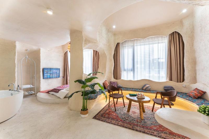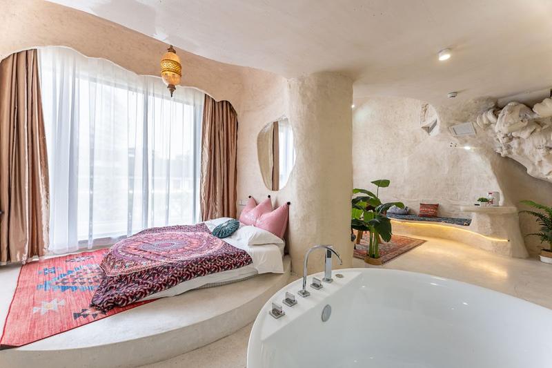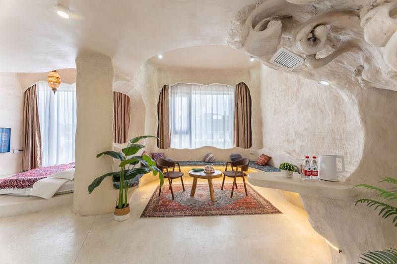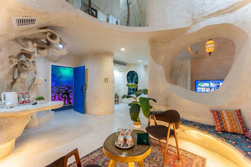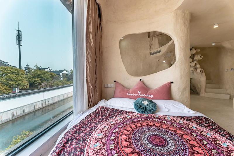 藏在乌镇里的土耳其,独居一格的土耳其洞穴装修搭上当下时尚的网红色调。整栋采用了石洞式的建筑形式,让人仿佛置身于一个古老而神秘的地方,粗犷的岩石搭配室内摆放着各种鲜花和绿植,充满了古朴的生命气息,随意在大厅静坐一角,阳光透着玻璃,照射进屋内,让远离城市喧嚣的您,得到心灵的片刻安静。 回字型的天井造型,一半临街,一半临河,让整个大厅室内透亮,二三楼为住宿,每层都有不同的房间供您选择。每个房间都有自己独特的风格和色系,让您在入住期间感受到不同的氛围和体验。 二楼主要为单间大床房,床型为木床和榻榻米两种,屋内配备了舒适的床铺,空调,电视,卫浴等设施,同时我们还提供了免费的无线网络,让你随时随地与家人朋友保持联系。 三楼主要是复式LOft房型,双床与沙发床,有原生洞穴式的Loft,上下两层空间开阔,也有贵族式的平层豪华大房,设计风格独特,既浪漫舒适又有趣,可满足不同旅客的需求,其中有部分房间自带露天阳台,可露天观影,烧烤,此项目需联系店长。 民宿也适合各种场合,如求婚、摄影,生日聚会,亲子活动、团建等。如果您正在寻找一种独特的住宿体验,那么土耳其洞穴风格的民宿是一个不错的选择。 民宿与西栅景区只一河之隔,紧邻景区出口,距离西栅南门进口15分钟脚程,去东栅7分钟车程,让回归的您非常方便。 在这里,您可以放下繁忙的工作和生活,享受到一段难忘的旅行时光。欢迎您的到来!