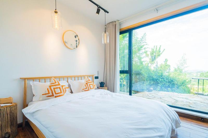不负云顶野奢民宿位于国家3A级景区——泉山云顶风景区内,世界吉尼斯纪录摩崖石刻“日照”巨书南侧,距日照市区20分钟车程,是一个集别墅民宿、体验餐饮、儿童乐园、草坪婚礼、高定婚宴、摄影采风、采茶制茶、艺术展览、营地教育、文化活动、会务团建、户外拓展等为一体的微田园综合体。是一所将国风元素创新融入,情感文案细腻流动、当代艺术家书画作品摄影作品点缀期间,把空间交给自然,把文化原创诗意还原,不遗余力的追求细节尽善尽美,持续结缘了志趣相投的生活美学爱好者。 不负云顶:仙女般的柔软时光 有那么一类人,对“住”的要求很高,对细节要求很多,容易感动,怀旧不将就,心思细腻且柔软,我们亲切的称之为“城市文青”,在这里,刚好满足您们对田园私密别墅的全部期待:大房间/大落地窗/深睡床品/TOTO卫浴/植物洗浴/泉水直饮/艺术格调/观景浴缸甚至无遮拦观景露台。美宿分为双层民宿与独栋民宿两种,其中双层民宿的下层配有1.8米大床的卧室、飘窗、壁炉、地暖、客厅、独立卫浴间与一个茶园小院,上层配有2.2米大床、飘窗、浴缸、独立卫浴间与超大观景露台,上下两层配有内置与外置双楼梯,若上下两层客人互不认识,这里将会关闭内置楼梯,使上下两层彻底分隔,每一层都是一个独立的个体,若上下两层客人相互熟识,民宿将会提前打开内置楼梯,使两层客房由内部建立联系,让上下两层为一体,为住客们提供便利,独栋民宿为独立院落,使住客在整个民宿区内充分享受静谧。 距离万平口/东夷小镇/森林公园等旅游度假区均是20分钟车程左右。