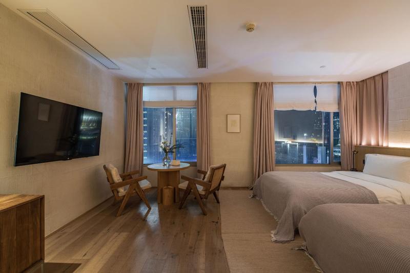 民宿隐于城市中央,公区享有180°落地窗景观。邀请国内著名设计师谢柯老师及其团队尚益扬设计公司操刀设计,大面积使用自然素材,原木白色调为旅行留出松弛空隙。重山什舍为住客配备24小时私人管家服务,不用再为旅行路程犯难。管家会为你准备精选早餐,手作下午茶及晚安甜汤,因为我们知道,旅行在外也要好好吃饭。“大隐于山,小隐于舍”六个房间分别取山城各处地名,加上“歇”字后缀,鸳鸯歇,鹅岭歇,翠云歇,金竹歇,朝天歇,花溪歇。赶了那么远的路,千里相逢,待你好一歇。