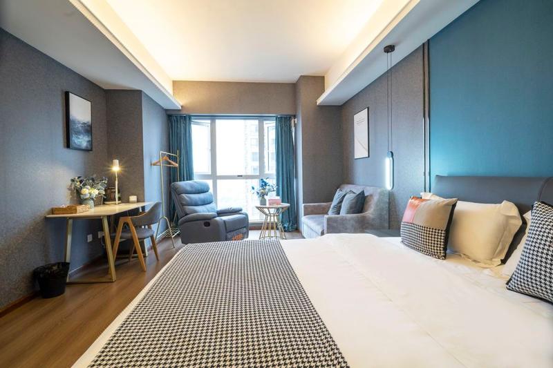 成都轻宿公寓(九眼桥店)位于成都一环路内,临近合江亭、兰桂坊、九眼桥、东大街CBD、四川大学、四川音乐学院、成都音乐厅,楼下商场有盒马鲜生、海底捞火锅、星巴克咖啡、小龙坎火锅及各类小吃美食,此外还有电影院、KTV、京东华为体验店等。旁边的九眼桥是成都著名的网红景点和酒吧美食街,九眼桥夜景也是必拍的风景,公寓部分客房的窗外可以看到九眼桥的迷人夜景;而东大街CBD的写字楼群,是成都是中心繁华的商务区;不远处的春熙路和太古里,是您购物逛街的好去处。 公寓房间面积40平左右,宽敞舒适,落地窗可远眺城市夜景,客房配备星级标准的优眠床垫,高品质床品,冷暖空调、高速WiFi、一次性洗漱用品及免费瓶装饮用水;并有迷你冰箱、洗衣机等常用电器设施,可供使用。轻宿是您来成都旅行和商务差旅的很好选择。