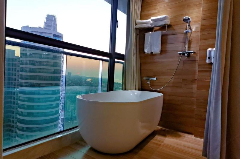 公寓位于北海市中心茶亭路上,马路正对面便是北海4A级旅游景区“海底世界”邻近南珠博物馆和滨海公园。距海边约100米,离北海老街大约800米距离,距北部湾1号金滩约900米。酒店附近有公交车站,出租.快车等出行便捷。生活超市海鲜市场也遍布酒店周围,海鲜大咖风味小吃更是琳琅满目。为每位游客的旅途提供方便。 公寓大堂电梯间都开放免费空调,房间有24小时热水,超高清电视和高速网络.免费提供行李寄存等。这些硬件设施与服务只为给您带来舒适的入住体验。另外酒店客房均位于高层,开门便可以看到大海。游玩一天后您可坐在阳台吹着海风看着大海.听着音乐尽情享受这段旅途。
