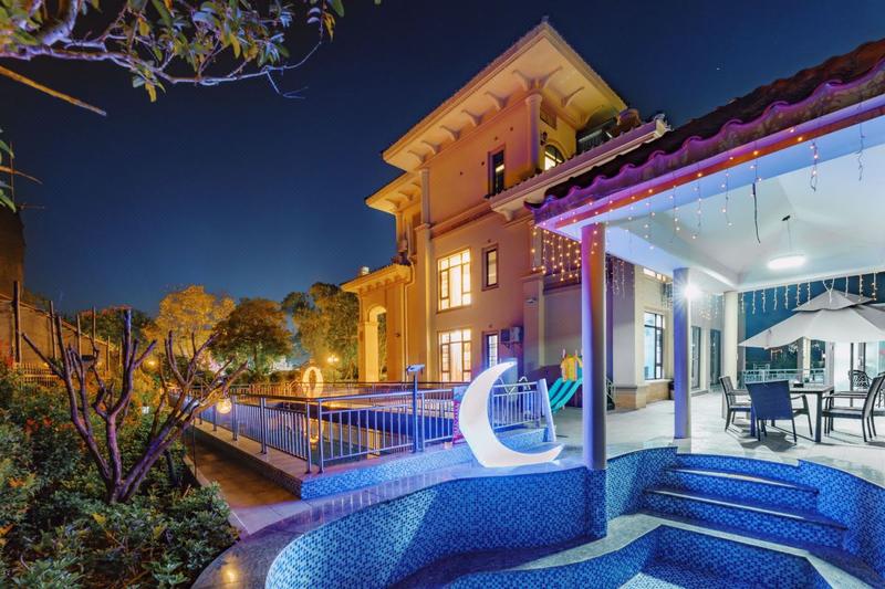 亲子滑梯·7房10床温泉KTV麻将泳池别墅