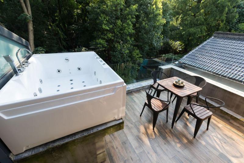民宿位于距离灵隐寺附近,步行3分钟、上香古道天竺路5号与点.距离杭州法云安缦酒店驾车3分钟、步行15分钟,周边茶园、新中式风格设计、独栋小楼,二楼是民宿,总共就两个带露台的客房,房形一样、私密性特别好、可在露台喝茶晒太阳远眺北高峰、财神庙,一楼带有独立庭院,庭院以花木翠竹为篱,点缀着四季花卉 ,卫浴、寝具和电器均按高星级酒店配置,适合和家人知己休闲放松小住。