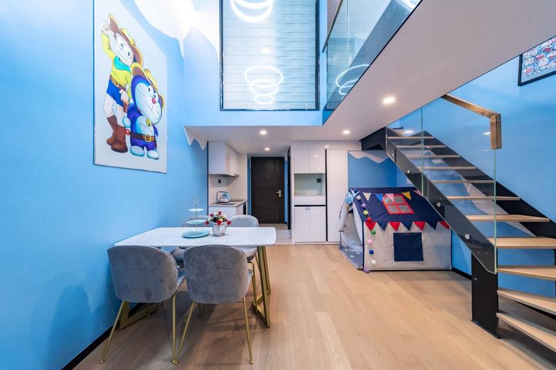 公寓位于深圳龙华民塘路与玉龙路交汇处HBC汇隆中心(深圳北站东广场A2出口、深圳北地铁站D出口),交通便利,去往香港西九龙、国际会展中心等地方便;酒店处于深圳北站商圈范围内,有缤果空间购物街、美食街、肯德基、天虹商场、星河Coco city等知名品牌店。 酒店客房为复式LOFT套房配备小米智能设备、家私、免费WIFI、网络电视、洗衣机、烘干机、叫醒服务、餐厅、行李寄存服务等,无论您是商务活动、还是休闲旅游都是您理想选择。