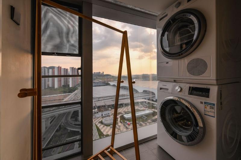 公寓位于深圳龙华民塘路与玉龙路交汇处HBC汇隆中心(深圳北站东广场A2出口、深圳北地铁站D出口),交通便利,去往香港西九龙、国际会展中心等地方便;酒店处于深圳北站商圈范围内,有缤果空间购物街、美食街、肯德基、天虹商场、星河Coco city等知名品牌店。 酒店客房为复式LOFT套房配备小米智能设备、家私、免费WIFI、网络电视、洗衣机、烘干机、叫醒服务、餐厅、行李寄存服务等,无论您是商务活动、还是休闲旅游都是您理想选择。