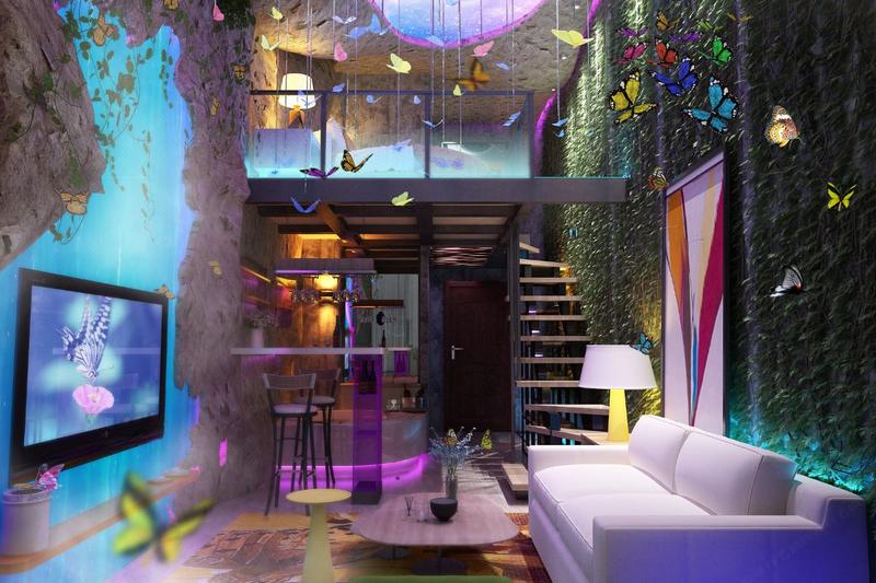 - 房间(开放): 楼 复式中空蝴蝶谷主题房