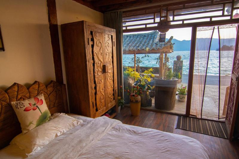 客栈地处泸沽湖达祖村,靠近达祖码头,依湖而居,既能看早上的日出还能看日落的晚霞。 客栈是一栋当地的民宅,装潢风格都是当地特色。客房内布置温馨,空间十分宽敞,有干净的洗浴间、24小时热水、空调等现代设施。 隔着一条环湖公路下面就是泸沽湖水,离湖直线距离大概8到10米左右,2楼大床房躺在床上就能看湖,在湖边散步、欣赏美丽的湖景,生活简单又惬意。