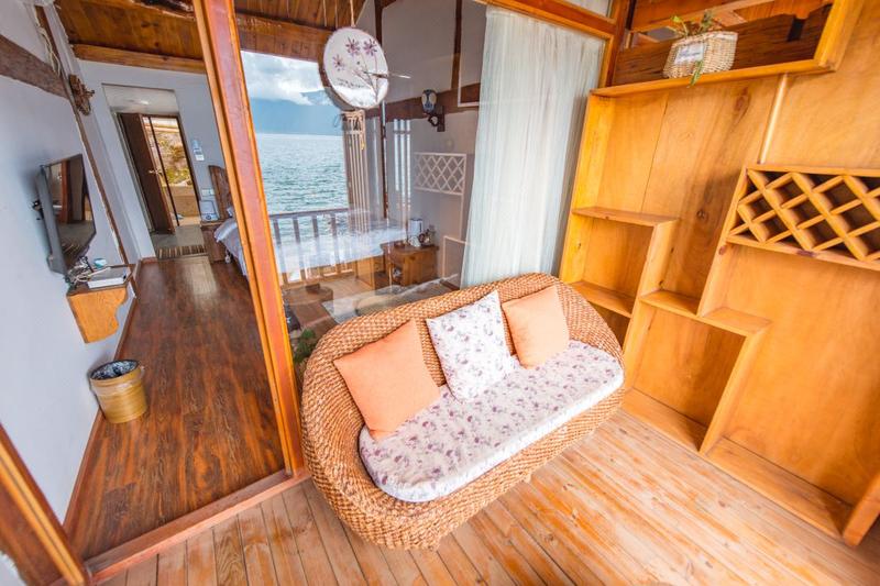 客栈地处泸沽湖达祖村,靠近达祖码头,依湖而居,既能看早上的日出还能看日落的晚霞。 客栈是一栋当地的民宅,装潢风格都是当地特色。客房内布置温馨,空间十分宽敞,有干净的洗浴间、24小时热水、空调等现代设施。 隔着一条环湖公路下面就是泸沽湖水,离湖直线距离大概8到10米左右,2楼大床房躺在床上就能看湖,在湖边散步、欣赏美丽的湖景,生活简单又惬意。