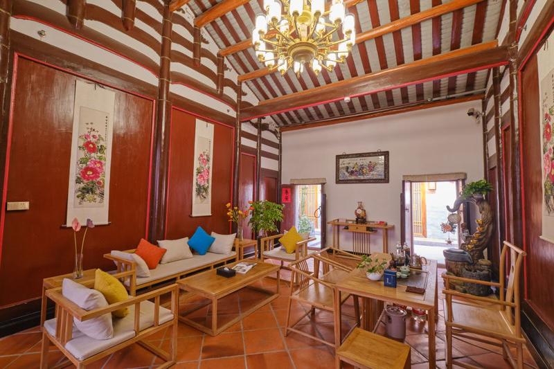 潮州沐阳客栈位于潮州古城区西马路,客栈所在的潮州古城区西马路中段,是古城景区交通主干中心,邻近四周牌坊街、滨江长廊、广济桥灯光秀、开元寺,西湖,许附马府等景点约6一8分钟左右步行路程可到达。 客栈门口西马路是潮州闻名小吃街,客栈门口对面是潮州著名十八曲鱼饺,往左往右都有琳琅满目各式当地正宗小吃和早餐,春饼、笋粿、红桃粿、糯米猪肠、咸水果、肠粉、卤水鹅,牛肉丸,沙茶粿,牛杂果条汤,鸭母捻、甘草水果、潮州三宝等等,应有尽有,各有各的风味。 客栈是由一座下山虎格局的老民居改建而成,改造后保留了原格局,一个大茶客厅跟一个天井,房间有复式套房和单间可供选择。民居淡雅而有韵味,庭院深深,阳光充足明媚、草木扶疏、古色古香、具有浓郁的文化底蕴和豪华气派!每个房间内部,从大床、床垫、被套、被单、空调、卫生洁具、电视、无线wifi、烟感、隔音、消防⋯⋯等等,配套设施齐全,舒适性、私密性强!典雅的大茶客厅配套雅致茶桌和实木沙发可供客栈的贵客们享用,在慵懒的时光,沏一壶茶,啜饮一口,齿颊留香,享受一种悠闲。