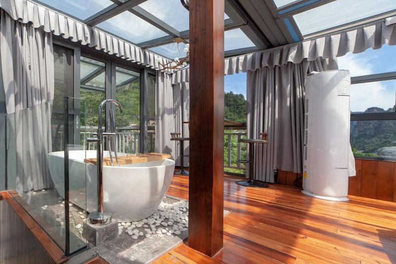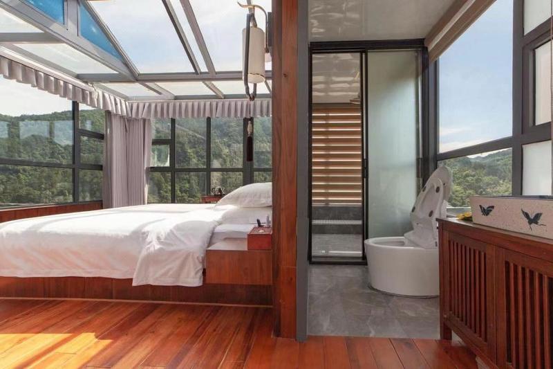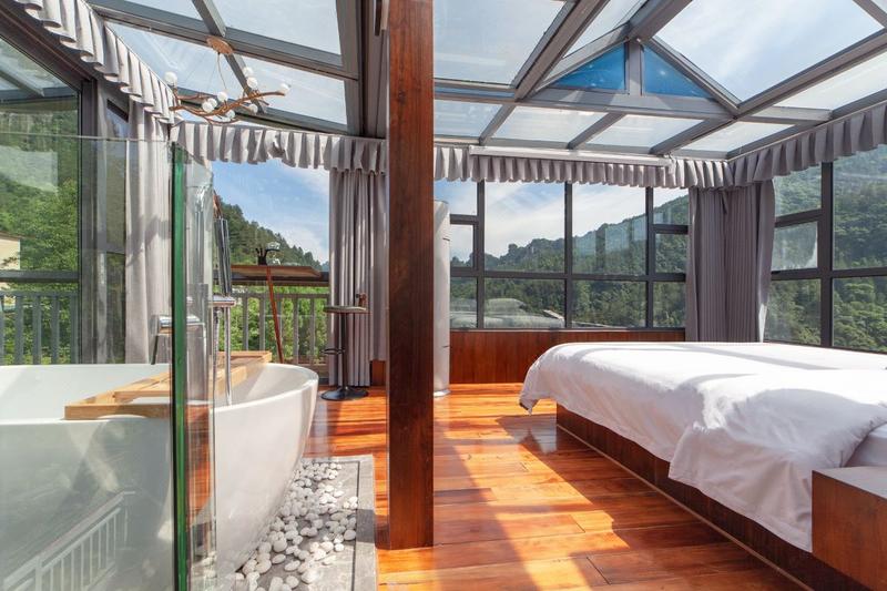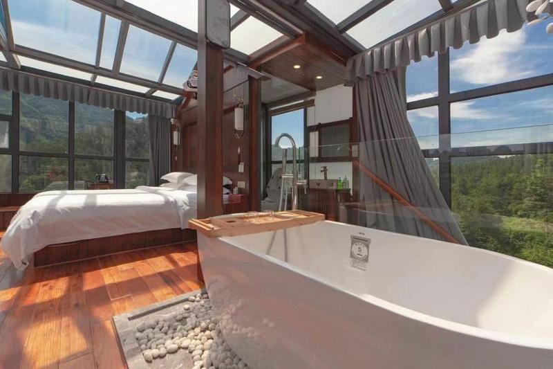 张家界迎客山居民宿位于锣鼓塔街道办事处张家界村新屋组,公园门票站近在咫尺,交通便利,客栈全新规划设计,外观保留古风特色,内在设计现代轻奢。山居的主人是土生土长的土家族人,让山居的基因内一开始便注满了爱与家的温度。迎客山居用原生态材料打造,留住了土家文化肌理,山景月色凉亭小憩,享受和煦温暖阳光,露台上慢饮一壶茗茶,浅尝一口土家族特色美食,推窗即现黄石寨独有奇峰,不失小隐于野的惬然;客栈的主人,将本地出产原生态的食材精心烹煮,新派湘味的乡食菜肴,带来的却是记忆中的味道。观景归来后慢慢享受一顿土家特色美味,夜晚伴着鸟鸣花香,酣然入睡,缓解一天的疲惫。