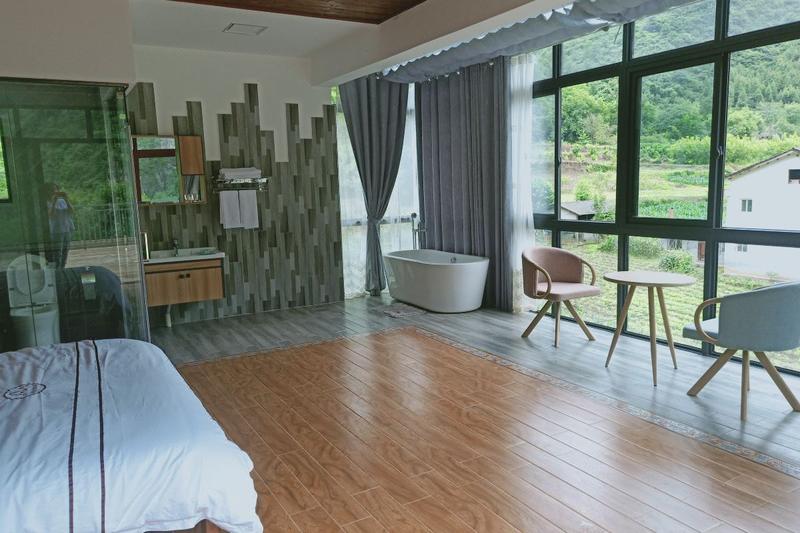 青川古道麻院45号民宿位于清溪古城到唐家河自然保护区必经之路中间路段,在唐家河大熊猫国家森林公园功能区内。到唐家河景区门口车程2公里左右。到清溪古城车程6公里。周围生态环境优美,依山傍水,绿树成荫,鸟语花香。房屋主体建筑体现为现代田园风。时尚与古典向结合。建筑完全融入周围山水画面中去。全玻璃卫生间,干湿分离,品牌卫浴。高清影视。当早晨一缕阳光透过落地窗照射进房间时候,您在清晨鸟儿的叫声中开启美好一天新旅程。夜晚降临,坐在独立阳台和同伴一起喝茶聊天数星星。感受大自然的清新。顶层的超大阳台观景阳光房,让您数着星星,忘却城市的烦恼。大厅全实木装修风格,背景音乐,书柜 长桌让你安静下来阅读,放空自己。或者坐在吧台和主人小酌一杯,聊聊旅行中的见闻。室外超大公共区域可以和朋友来一场BBQ,联欢晚会。还有老板娘随时为你准备具有当地特色的美味佳肴。