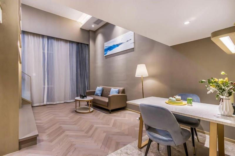 公寓坐落于华策影视中心,是以后的影视基地。紧邻地铁5号线,旁边就是学军中学、浙大、人才公寓,周边全是高等教育人才的聚集地。离西溪银泰城也很近。整个公寓有平层也有loft房型,高级灰的欧美风格房间,可以让您体验到一种在家中的舒适温馨体验。