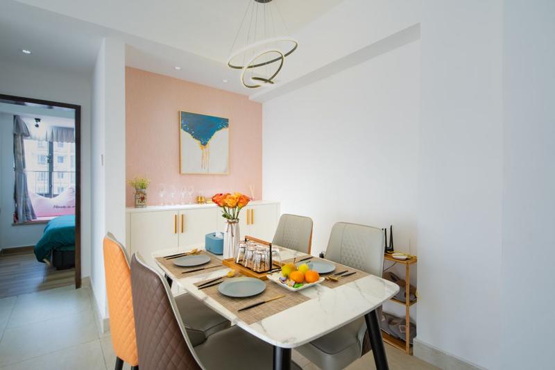 星空里精品民宿位于东莞市南城区鸿福路,CBD地段鸿福地铁口上盖,楼下即是汇一城、吉之岛、康帝酒店。附近有市中心广场、国贸城、台商大厦、东莞会展中心、玉兰大剧院、东海酒家、稻香酒家、鸿福路地铁口,一站式吃喝玩乐逛街购物!处于繁华地段高层,房间是欣赏东莞城市夜景极佳的地方! 公寓时尚、清新,具有设计感,拥有多种房间类型供您选择,房间宽敞洁净,一房一厅一厨一卫约60~75平方,两房一厅一厨一卫为92~105平方,并配以完善的设施设备,有互联网投影仪、冰箱、洗衣机、厨具用品和餐具一应俱全,带优质物业管理!公寓是无人智能自助入住,预订成功后,请直接联系前台,获得自助入住指南和智能门锁密码。 房东爱花艺,房间内常备鲜花、绿植!通风采光好,是享受单身时光、闺蜜岁月、恋爱蜜语的美好旅程!我们坚持提供精品主题民宿,星空里精品民宿欢迎您! 星空里精品民宿给你一个东莞的家!
