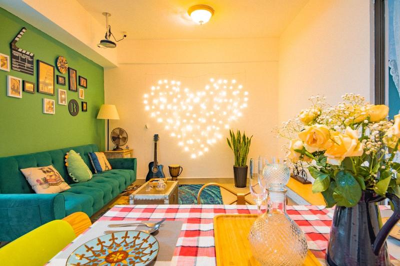 星空里精品民宿位于东莞市南城区鸿福路,CBD地段鸿福地铁口上盖,楼下即是汇一城、吉之岛、康帝酒店。附近有市中心广场、国贸城、台商大厦、东莞会展中心、玉兰大剧院、东海酒家、稻香酒家、鸿福路地铁口,一站式吃喝玩乐逛街购物!处于繁华地段高层,房间是欣赏东莞城市夜景极佳的地方! 公寓时尚、清新,具有设计感,拥有多种房间类型供您选择,房间宽敞洁净,一房一厅一厨一卫约60~75平方,两房一厅一厨一卫为92~105平方,并配以完善的设施设备,有互联网投影仪、冰箱、洗衣机、厨具用品和餐具一应俱全,带优质物业管理!公寓是无人智能自助入住,预订成功后,请直接联系前台,获得自助入住指南和智能门锁密码。 房东爱花艺,房间内常备鲜花、绿植!通风采光好,是享受单身时光、闺蜜岁月、恋爱蜜语的美好旅程!我们坚持提供精品主题民宿,星空里精品民宿欢迎您! 星空里精品民宿给你一个东莞的家!