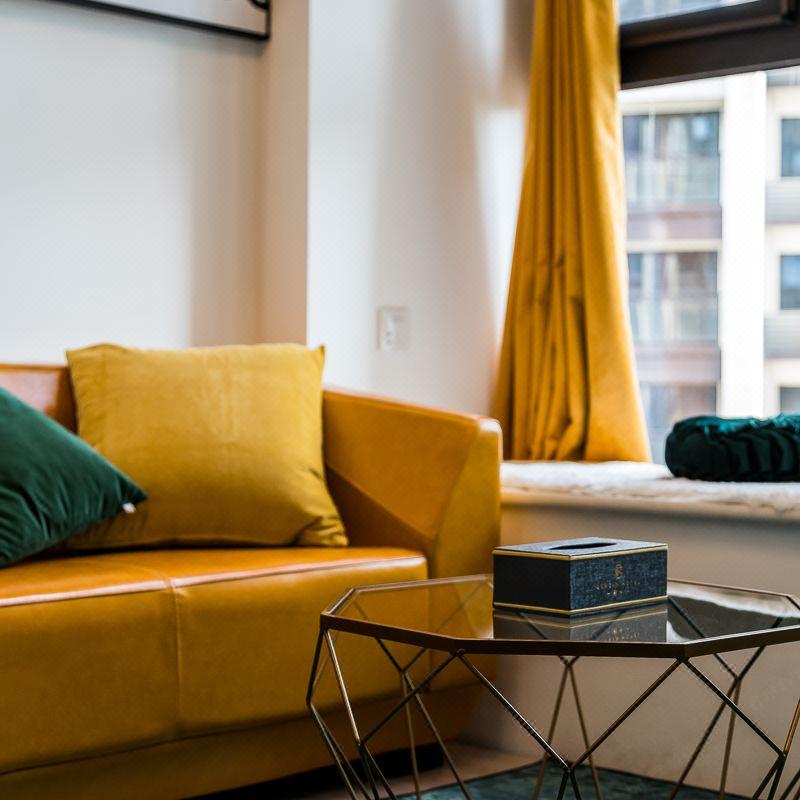 【地理位置】歌今Gerzin Hotel酒店位于成都市中心九眼桥商业区,集时尚休闲娱乐为一体的核心地段,“茂业豪园”商业群楼内,同时酒店附近有双地铁2号和6号线地理位置优越,紧临春熙路太古里,IFS金融中心,新南门车站,四川大学等。 【酒店特色】全房型Loft独特户型设计,3.9m挑高落地窗视野无敌,高空俯瞰湖中景,远处眺看蜀镜城。还打造了多个温馨、舒适风格迥异、颇具匠心房型,尽力为每位客人准备心仪主题的房间,每个房间设计风格都不一样,每一处细节都是艺术感和舒适感的融合,还拥有配套齐全的设施和暖心的管家式服务,让每位客人都能有温馨浪漫的体验~ 【酒店服务】我们对卫生严格坚持一客一换,每日消毒的原则,我们把城市的繁华和幽静的栖息融入一体, 您到达公寓大门时,我们将接待您入住。 “往事尽歌今亦景” 酒店在成都与您的相遇,会成为您一个值得歌颂的今天。 成都欢迎您,愿您安逸快乐。