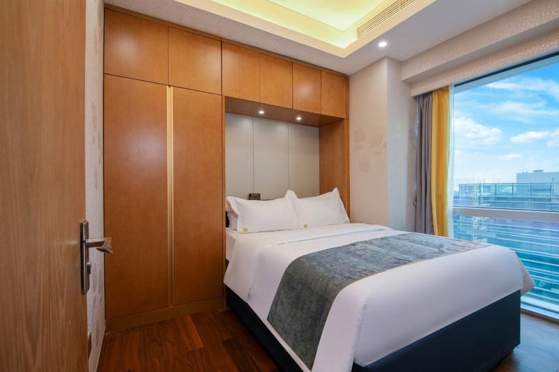 深圳格姆顿轻奢国际公寓位于深圳龙华民塘路与玉龙路交汇处深圳北站,交通便利,去往香港西九龙、国际会展中心等地方便;酒店处于深圳北站商圈范围内,有缤果空间购物街、美食街、肯德基、天虹商场、星河Coco city等知名品牌店。 全新高标准精装修公寓,均配置独享百兆光纤、电视机、洗衣机、干衣机,景观阳台和品牌卫浴等,一应俱全,宾客尽享高而不贵的品质服务。