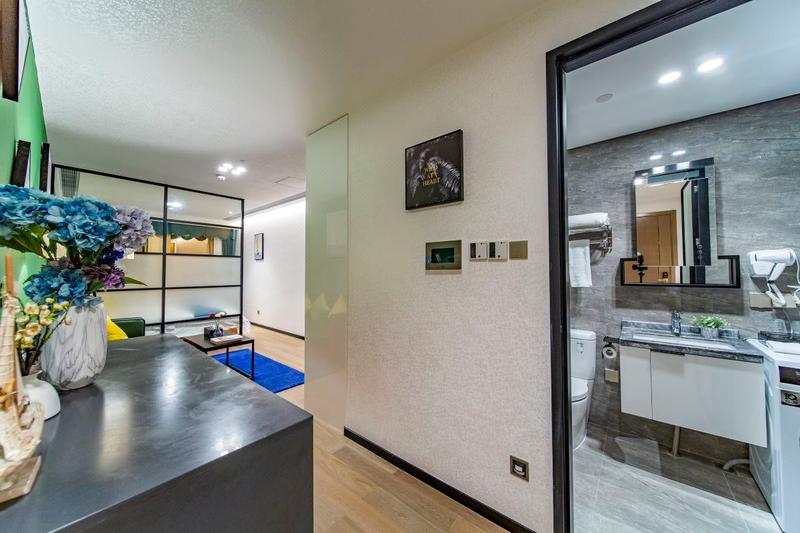 公寓在深圳知名的主干道深南大道东路南侧,地处罗湖,城市商业配套成熟、地理位置优越、可选交通方式便利;门前既是“京鹏大厦”公交车站,从酒店步行至地铁2号线湖贝站A出口,9号线文锦站D出口5分钟左右;步行至全国闻名的东门步行街10分钟左右,步行至文锦渡口岸8分钟左右,商圈有罗湖口岸、文锦渡口岸、东门、万象城,地王大厦、深圳书城,大剧院、小平画像等知名商场与景点。 公寓房间装修轻奢高端风格,深受年青人喜欢;客房内卫浴选配了德国高端Hansgrohe品牌龙头与花洒,KOHLER坐便器、床品一流、景观无敌。秉承品质及服务理念,凭借精良完善的设施和服务,为每位宾客奉献超群绝伦的品质体验!