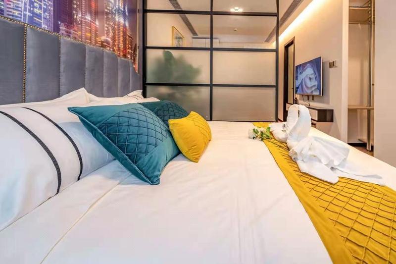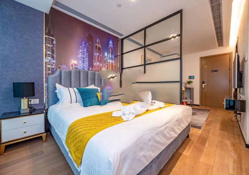 公寓在深圳知名的主干道深南大道东路南侧,地处罗湖,城市商业配套成熟、地理位置优越、可选交通方式便利;门前既是“京鹏大厦”公交车站,从酒店步行至地铁2号线湖贝站A出口,9号线文锦站D出口5分钟左右;步行至全国闻名的东门步行街10分钟左右,步行至文锦渡口岸8分钟左右,商圈有罗湖口岸、文锦渡口岸、东门、万象城,地王大厦、深圳书城,大剧院、小平画像等知名商场与景点。 公寓房间装修轻奢高端风格,深受年青人喜欢;客房内卫浴选配了德国高端Hansgrohe品牌龙头与花洒,KOHLER坐便器、床品一流、景观无敌。秉承品质及服务理念,凭借精良完善的设施和服务,为每位宾客奉献超群绝伦的品质体验!