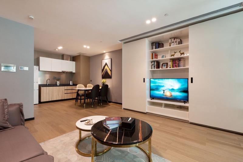 公寓在深圳知名的主干道深南大道东路南侧,地处罗湖,城市商业配套成熟、地理位置优越、可选交通方式便利;门前既是“京鹏大厦”公交车站,从酒店步行至地铁2号线湖贝站A出口,9号线文锦站D出口5分钟左右;步行至全国闻名的东门步行街10分钟左右,步行至文锦渡口岸8分钟左右,商圈有罗湖口岸、文锦渡口岸、东门、万象城,地王大厦、深圳书城,大剧院、小平画像等知名商场与景点。 公寓房间装修轻奢高端风格,深受年青人喜欢;客房内卫浴选配了德国高端Hansgrohe品牌龙头与花洒,KOHLER坐便器、床品一流、景观无敌。秉承品质及服务理念,凭借精良完善的设施和服务,为每位宾客奉献超群绝伦的品质体验!