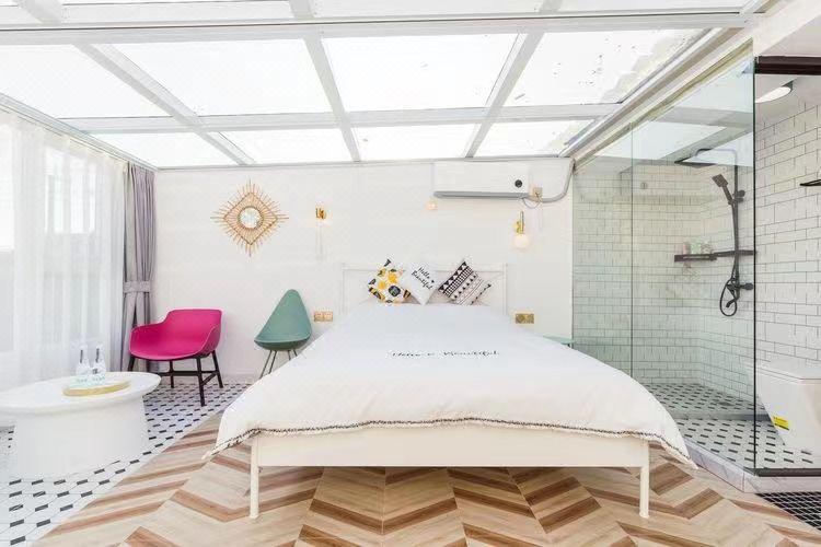 我们的民宿身处迪士尼两公里的独栋小墅,有难能可贵悠闲慵懒的安静,不谋而合地以此定义为适合居住的dream house,名为简兮民宿,简兮简兮,方将不舞,我们民宿是经典的北欧设计,大面积的留白,简单不失品味的家具摆放,和谐的艺术品点缀。没有刻意装饰很多不耐看的浮夸元素,也没有单打独斗的出挑色彩,空间积淀出了虚实的美,更多涌现的是像瑞典芬兰设计师朴素的家,紧凑又适当保持了美的分寸。 注重睡眠质量的房东特别选用了deRucci的护脊床垫,房间安装了双层隔音玻璃,还配备投影/冰箱/电磁炉/空调/wifi/晾衣架/他24小时热水/小米烧水壶/直白吹风机等齐全家电,床品与毛巾坚持一客一换,每个房间都有独立的卫生间,所有洗漱品也准备周到了。一楼有公共区域,餐厅,户外有个小院子,您可以置身透明玻璃船在泳池里荡漾,在我们看不到但感受到的地方,全方位占领身心每个细胞,住进了一个安静舒适的被照料的很好有家的氛围。期待您的到来。