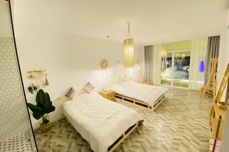 我们的民宿身处迪士尼两公里的独栋小墅,有难能可贵悠闲慵懒的安静,不谋而合地以此定义为适合居住的dream house,名为简兮民宿,简兮简兮,方将不舞,我们民宿是经典的北欧设计,大面积的留白,简单不失品味的家具摆放,和谐的艺术品点缀。没有刻意装饰很多不耐看的浮夸元素,也没有单打独斗的出挑色彩,空间积淀出了虚实的美,更多涌现的是像瑞典芬兰设计师朴素的家,紧凑又适当保持了美的分寸。 注重睡眠质量的房东特别选用了deRucci的护脊床垫,房间安装了双层隔音玻璃,还配备投影/冰箱/电磁炉/空调/wifi/晾衣架/他24小时热水/小米烧水壶/直白吹风机等齐全家电,床品与毛巾坚持一客一换,每个房间都有独立的卫生间,所有洗漱品也准备周到了。一楼有公共区域,餐厅,户外有个小院子,您可以置身透明玻璃船在泳池里荡漾,在我们看不到但感受到的地方,全方位占领身心每个细胞,住进了一个安静舒适的被照料的很好有家的氛围。期待您的到来。