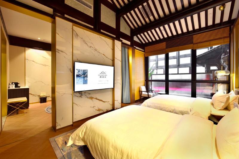 成都院子酒店位于市中心,毗邻四大禅林之首-文殊院,距离春熙路,宽窄巷子,天府广场约1.8公里;太古里约2.2公里;锦里约3.5公里;距离地铁1号线文殊院站500米左右。 这是以成都文化为主题的艺术典藏精品酒店,建筑面积16000平米,由16座川西风格庭院围合而成。院内有中式庭院客房八十余间,客房以成都手工技艺中的中国非遗文化五朵金花:蜀锦、蜀绣、银花丝、漆器、竹编为主题。荣获国家旅游局主题文化高奖“金鼎”奖。 酒店管家式服务,满足各种需求的多功能厅、极具特色中西宴会厅、院落茶吧、咖啡吧、健身房、文化品典藏拍卖。