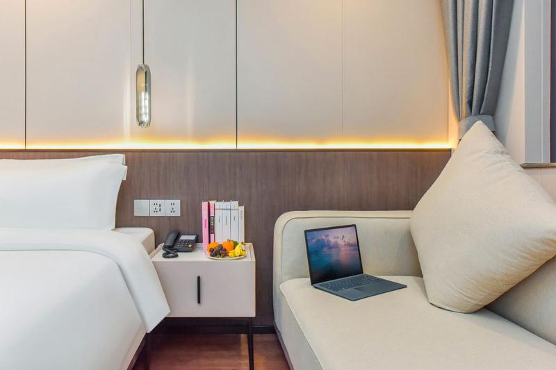 本酒店是一家全新的商务休闲型酒店,座落于成都市春熙路商圈核心地段,毗邻锦江河畔,交通便利,距成都北站15分钟车程,成都东站20分钟车程,成都双流机场30分钟车程,成都天府国际机场45分钟车程,步行至地铁4号线太升路站3分钟,步行至春熙路太古里商圈10分钟。 酒店装修风格轻奢,融合时尚典雅、温馨舒适、人性周到于一体。房型包括普通标准房、豪华标准房、商务单间、豪华单间、家庭亲子间、家庭套房(三人间)、豪华套房共计七种房型。房间内设有国内直拨电话、高速宽带网络、卫星电视、独有的智能化管理及电子门锁和红外线防范系统,都将使您备感安全舒适。酒店同时设有健身房,洗衣房等附属设施,为旅居他方的宾客提供悉心周到的服务。是各界宾客汇集,从事重要商务、休闲娱乐活动的理想之所。