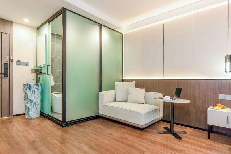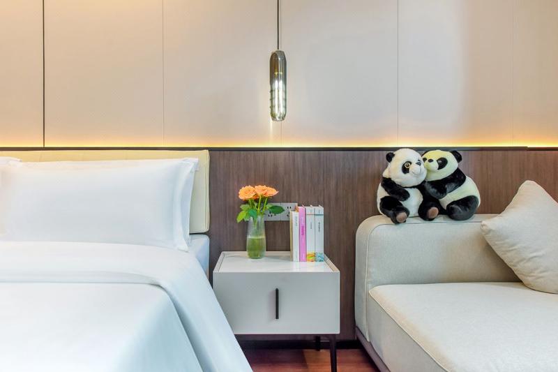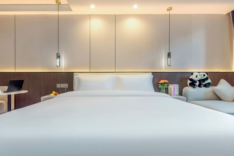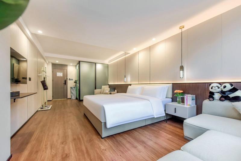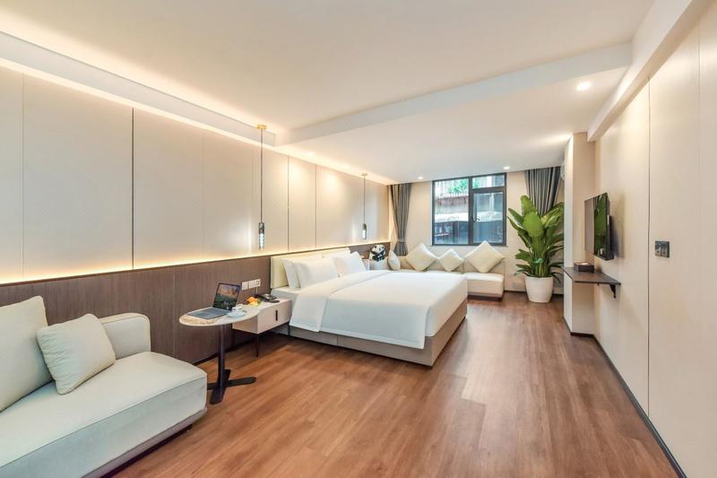 本酒店是一家全新的商务休闲型酒店,座落于成都市春熙路商圈核心地段,毗邻锦江河畔,交通便利,距成都北站15分钟车程,成都东站20分钟车程,成都双流机场30分钟车程,成都天府国际机场45分钟车程,步行至地铁4号线太升路站3分钟,步行至春熙路太古里商圈10分钟。 酒店装修风格轻奢,融合时尚典雅、温馨舒适、人性周到于一体。房型包括普通标准房、豪华标准房、商务单间、豪华单间、家庭亲子间、家庭套房(三人间)、豪华套房共计七种房型。房间内设有国内直拨电话、高速宽带网络、卫星电视、独有的智能化管理及电子门锁和红外线防范系统,都将使您备感安全舒适。酒店同时设有健身房,洗衣房等附属设施,为旅居他方的宾客提供悉心周到的服务。是各界宾客汇集,从事重要商务、休闲娱乐活动的理想之所。