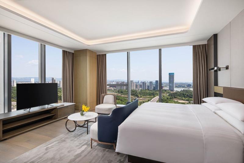 酒店位于博览城路,地理位置优越,靠近成都天府新区中央商务区,交通便利,步行1分钟即达地铁1号线广州路站可直达市中心,步行10分钟即达地铁18号线西博城站,此站约15分钟直达火车南站,约30分钟直达天府国际机场。 酒店融合现代美学风格,配备灵活的办公和休闲区,并配备高速 Wi-Fi、平面高清电视等各类设施。 万荟轩餐厅供应自助式早餐,午餐和晚餐则以川菜、粤菜和亚洲风味美食为主,可轻松容纳 168 位食客。大堂吧供应各式精美甜点、咖啡和鸡尾酒,是商务会面及休闲社交的不二之选。 酒店还为宾客提供专属的24小时健身中心,位于酒店6楼,配备先进齐全的有氧运动和力量健身器材,包括跑步机,交叉训练机,自行车机及自由重量的器械,将为宾客提供全新的健身体验。 酒店为商务会议及其他活动提供1间宴会厅及6间多功能会议室,可灵活调整为不同规格的会议空间,以满足客人的不同需求。