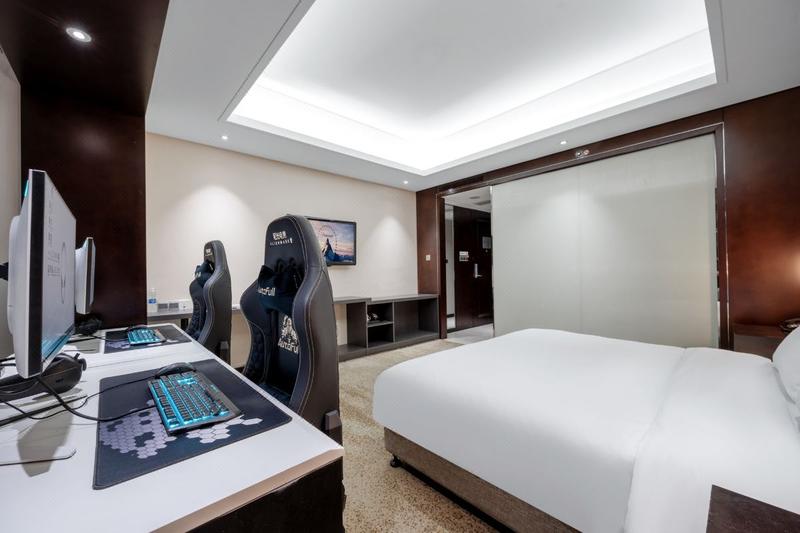 酒店位于成都天府广场地铁站附近,毗邻成都博物馆、天府广场、四川省科技馆,领地中心,地理位置得天独厚,交通快速便捷。周边集购物、餐饮、网红打卡景点等一应俱全。成都百年金街春熙路、太古里、成都动物园、熊猫基地、339电视塔、熊猫体育公园、文殊院、文殊坊、昭觉寺、东郊记忆文创公园;天府广场、科技馆、博物馆、宽窄巷子、武侯祠锦里、杜甫草堂、青羊宫、金牛万达、欢乐谷、西南交通大学,电子科技大学;九眼桥,兰桂坊酒吧街;四川大学三圣乡等成都网红打卡地点均可以乘地铁或公交快速、轻松直达,让您全方位体验成都蓉城的多姿多彩。 酒店为ALIENWARE外星人主题酒店,由ALIENWARE全球设计师匠心打造,以Space Odyssey太空漫游为主线,模拟人类从地球一路旅行到宇宙空间站的整个过程,玩家在各个区域都能感受到整个空间的未来感、科技感,一步一步从现实世界进入到一个超现实、沉浸感强烈的电竞空间。位于17层高空览景客房,房间全部选用落地窗,让你一睹周边全景,且在游戏之余,还能透过窗外感受成都的市井气息与车水马龙。 酒店配备多种房型,涵盖1人到5人间,可满足电竞宾客各种喜好,智能化房间操控、MM投影仪、ALIEWARE全系列高端电竞设备,相信都能给您带来奇幻的太空电竞之旅。全系列房间统一为您配备ALIENWARE R12主机(lol官方比赛专用机)、3060TI显卡、AW272HF显示器、510k键盘,510M鼠标,310H耳机,傲风电竞座椅;小度全屋智能客控系统,带您感受超氛围职业赛场!房间内配有冰箱以及各类酒水饮料食品,软硬舒适的床品以及高品质洗漱用品;酒店前台将为您提供细致温馨的服务,让您在竞技娱乐同时感受宾至如归的服务体验。酒店将为您提供全新奇妙的太空竞技体验!