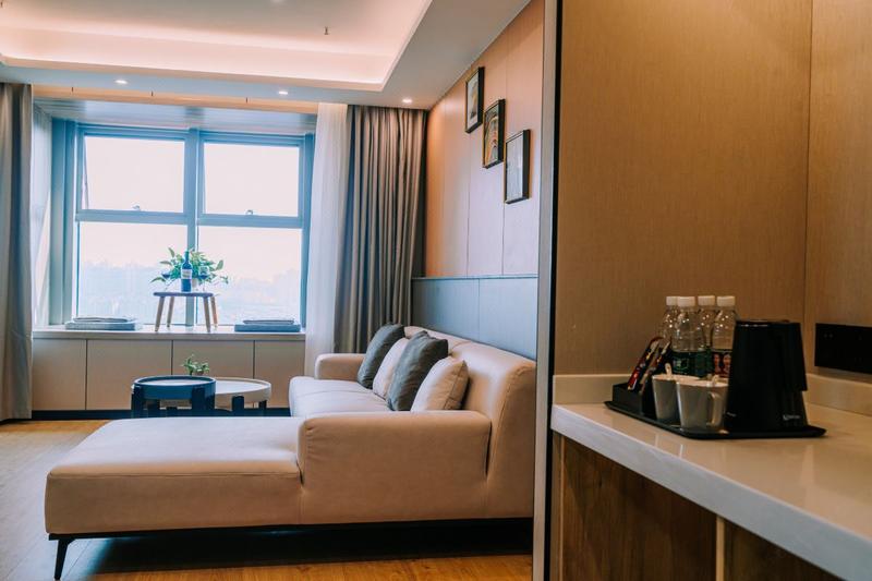 怡莱精品酒店(泸州万象汇店)位于泸州市佳乐世纪城欢乐汇希顿公寓,毗邻金融中心及万象汇等大型商业中心,酒店周边集购物,娱乐,美食为一体的品牌舒适型酒店,距西南医科大新院区康健城约2.2公里,出行便捷! 酒店客房视野效果极好,白天俯瞰泸州半壁江山,还有那希望的朝阳~夜晚的沱江桥更是让您感觉霓虹璀璨,房间专设的观景飘窗,配上一杯微醺的酒酿,感受醉美泸州~临江而憩,拥景而眠~简约而不失大气的客房布局,典雅别致的装修风格,温馨的酒店服务,为旅行居住在外的您提供最优质的服务·