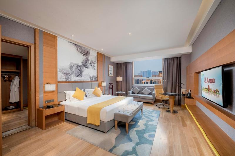 酒店由四川优秀民营企业四汇集团精心打造的集商务、会议、餐饮、休闲等于一体的高品质地标性豪华酒店。酒店位于四川省德阳市松花江南路117号,属城南核心商圈,背靠德阳市演艺中心、广播电视台,紧邻市政务中心、五洲广场,地理位置极为优越。同时,德阳城市候机楼座落于酒店旁,为双流国际机场和天府国际机场的客人提供机票预订、改签、行李托运、机场大巴等服务;成都地铁3号线摆渡车站点距酒店很近,旅程出行便捷。 酒店占地面积8661㎡,建筑面积52394㎡,总楼层高27层,车位近500余个。拥有设施齐全的商务房、智能房、行政房、亲子房、女士房、福瑞房、豪华套房等各式特色客房。 酒店设有时光西餐厅、和食居日料餐厅、四季荟中餐厅、云荟餐厅等多个特色餐厅,选聘业内知名厨师团队精心打造各类珍馐佳肴。四季荟中餐厅有35㎡—180㎡不等的包间14个,包间可容纳40人用餐。设11个无柱多功能宴会厅,可同时接待1000余人的会议或200桌婚宴。酒店紫苑坊、香茗轩、阳光花园露天茶座、健身房等配套设施格调高雅,功能齐备,为宾客休闲品茗、棋牌娱乐、运动健身带来尊享体验。 酒店曾多次接待省委、省政府主要领导,成功承接全国青年志愿者交流会、中国·德阳同城化财富论坛、德阳市委党代会、政协会等重要会议及国际性若干大型活动,并得到主办方一致好评。2019年9月被全国星评委评定为“金树叶级”绿色旅游饭店;2020年荣获德阳经济技术开发区“美食品鉴季特色匠心奖”;2021年度被评为:“强势复苏里程碑人气酒店”、“年度卓越商务酒店”。 酒店始终秉承“共享、阳光、陪伴”的价值观,致力于成为全国知名品牌。酒店全体员工努力践行"共享这一刻陪伴"的使命担当,热忱期待您的光临!