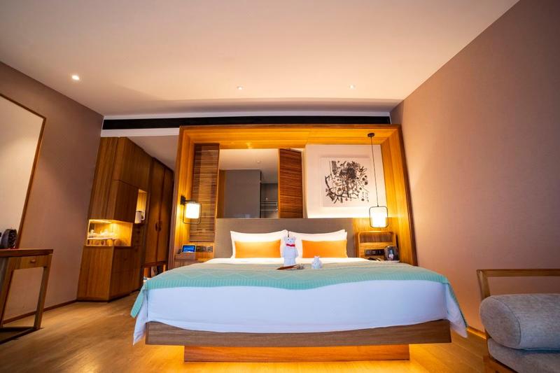 她,居室见林,推窗赏月,都市归闲,花间放歌。 她,雅奢漫生活花园式酒店,居于川西北以南,三江湖边,绵阳重要的动植物栖息地和绵阳旅游休闲新地标,交织自然与城市的生态湿地公园。有山,有水,有家人,有挚友,有情怀与梦。静谧的氛围贯穿于每个角落,抛去浮躁,只剩下纯粹的生活和人。 她的27套全智能语音控制系统客房,搭载着专属于您的订制洗护用品、气味芬芳,或读书、或品茶,让置身于室内的您,无时无刻都想要贪恋属于您的花园,倾听花开的声音。 她,坚守健康养生的美食理念,坚持用工匠精神精雕细作,将养生汤品与现代中、西餐进行完美的交融。尊崇的体验感及仪式感,让您惊叹于美食美器,不光可以满足您的味蕾,还可以成为您和友人值得留恋的纪念。 她,将社交空间与周遭美景进行了完美的融合,全心全意的为您提供私人定制。无论是您想要的私密空间,抑或是您和家人、朋友的各类友情趴,都将让她深知您意,尽得您心。 当您走进她,身处其中,细品每一处设计的理念和内涵,仿佛可以看到一种自在。阳光透过玻璃照耀着,光束随时间移动,一杯茶,一本书,加上亲手种植的一抹绿,于汪洋世界中,安放身体和灵魂……