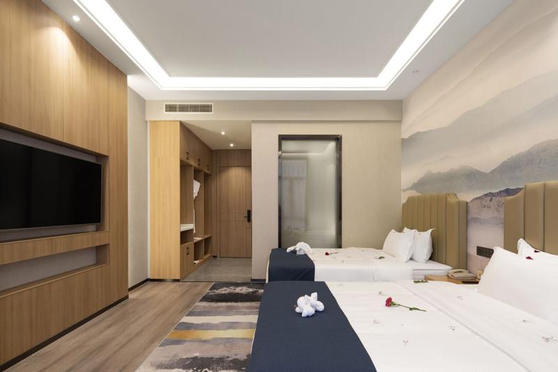 酒店位于园艺山科园路(聚贤山庄生态别墅区人工湖畔),闻教育园区怡人书香,拥人工湖绮丽芳华,交通便捷四通八达,以离尘不离城的独特姿态,浸润着自然的气息与悠然的生活气质。酒店距人工湖景区约900米,教育园区约3公里,几分钟即达西南科技大学西山校区、绵阳中学、东辰中学、南山双语、绵阳外国语等学校,毗邻科创园区政务中心、孵化大楼。紧邻西山公园、人才公园。 酒店共有七十余间客房,整体装修风格轻奢时尚,环境舒适整洁。客房配备智能客控系统、中央空调、液晶电视、整体浴室、24H热水、零压床垫、高档床品及洗漱用品,配有营养早餐和特色私厨餐,免费停车场,可容纳120人会议室,为宾客营造舒适、轻奢、静谧、时尚的住宿体验,满足您多样入住需求。