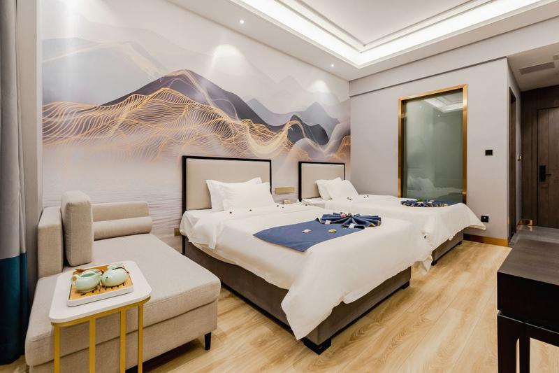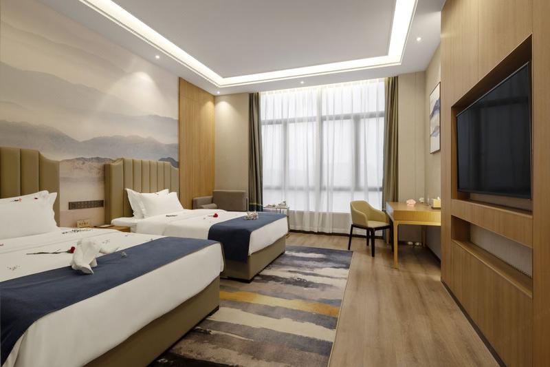 酒店位于园艺山科园路(聚贤山庄生态别墅区人工湖畔),闻教育园区怡人书香,拥人工湖绮丽芳华,交通便捷四通八达,以离尘不离城的独特姿态,浸润着自然的气息与悠然的生活气质。酒店距人工湖景区约900米,教育园区约3公里,几分钟即达西南科技大学西山校区、绵阳中学、东辰中学、南山双语、绵阳外国语等学校,毗邻科创园区政务中心、孵化大楼。紧邻西山公园、人才公园。 酒店共有七十余间客房,整体装修风格轻奢时尚,环境舒适整洁。客房配备智能客控系统、中央空调、液晶电视、整体浴室、24H热水、零压床垫、高档床品及洗漱用品,配有营养早餐和特色私厨餐,免费停车场,可容纳120人会议室,为宾客营造舒适、轻奢、静谧、时尚的住宿体验,满足您多样入住需求。