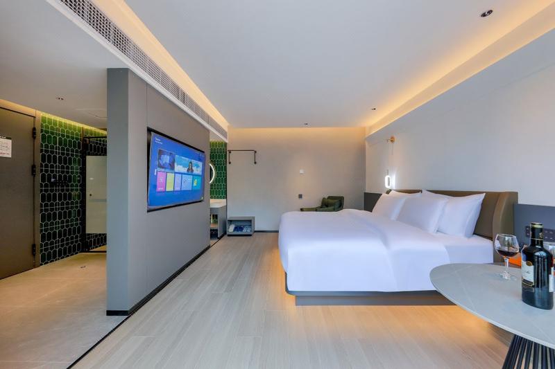 喜悦酒店是一家集住宿、休闲娱乐、会议、宴会为一体的综合性酒店,酒店有各类客房,客房以现代轻奢风格为主,全客房采用智能语音控制窗帘、电视、灯光、呼叫前台、智能马桶、布草床垫采用星级标准等,客房有语音大床房、影院大床房、高级双床房、露台套房、家庭套房,入住含双人早餐,享欢迎水果、安眠牛奶、免费停车、免费洗衣熨烫等服务,喜悦酒店秉承顾客体验的理念,欢迎各位宾客的光临