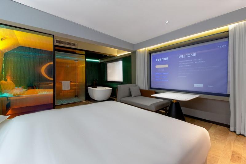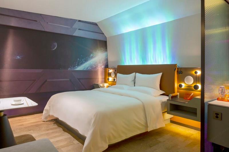 绵阳新落地的潮牌精品酒店。国内领先的全智能客房系统,智能机器人送物零接触、巨幕极光影院多维视听享受,停车场、花园式咖啡吧、餐厅会议空间、茶艺棋牌室配套完善,带给你时尚精致的酒店体验。星FS酒店—年青人的理想酒店。酒店地处高新区繁华中心地带,周边配套齐全,交通方便,给您星空影院视觉感受的体验。