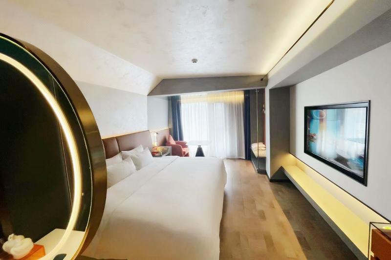 绵阳新落地的潮牌精品酒店。国内领先的全智能客房系统,智能机器人送物零接触、巨幕极光影院多维视听享受,停车场、花园式咖啡吧、餐厅会议空间、茶艺棋牌室配套完善,带给你时尚精致的酒店体验。星FS酒店—年青人的理想酒店。酒店地处高新区繁华中心地带,周边配套齐全,交通方便,给您星空影院视觉感受的体验。