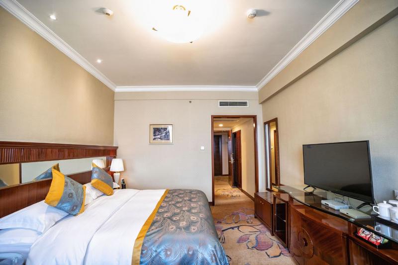 酒店位于享有“天蓝、地绿、水清、人和”美誉的西部科技城——绵阳市市中心,是当地规模较大、综合配套设施最为完善的旅游饭店之一。酒店坐落于市中心繁华商业区,位置优越,环境宜人。 酒店总投资2.3亿元人民币(不含土地价),占地面积16000平方米,总建筑面积4.3万平方米,主楼20层,裙楼4层。酒店于2000年10月晋升为四川省地、市(州)旅游饭店,拥有风格迥异、华贵典雅的各式客房;构思新颖、设计独特的餐厅荟萃了川菜、粤菜、法式西餐等中外美食;各类大、中、小型会议室和气势恢弘的山海厅均按国际会议厅标准设计,可同时接待500人规模的会议,是旅游度假、商务洽谈、休闲娱乐的理想之地。