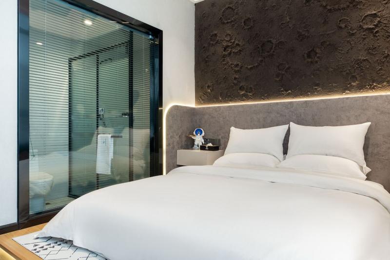 酒店坐落于科技城新区创业园街道八角中路8号倍特香槟华府一期2栋,以高端、时尚、青春、多样化、智能化为理念,丰富的配套设施为基础,全方位为客人提供优质的服务和舒适体验。酒店配置大床至六人间近十种房型,尽可能满足玩家的各类社交需求。全屋智能语音系统、专业电竞设备、中央空调、双开门大冰箱、24小时在线客服全天服务、24小时自助洗衣房、免费提供洗面奶、卸妆巾及创口贴、药箱、酒精等,满足您对理想电竞空间的所有幻想。在这里您可以足不出户,转过身便可随意选择近二十种各类饮料及零食。夜深了,当您略感一丝疲惫躺在床上的时候,您只需轻唤一声智慧管家,将房间调到睡眠模式,便可关闭一切灯光及窗帘。顺便让智慧管家将空调调至您喜欢的温度,享受一晚放松的深度睡眠......