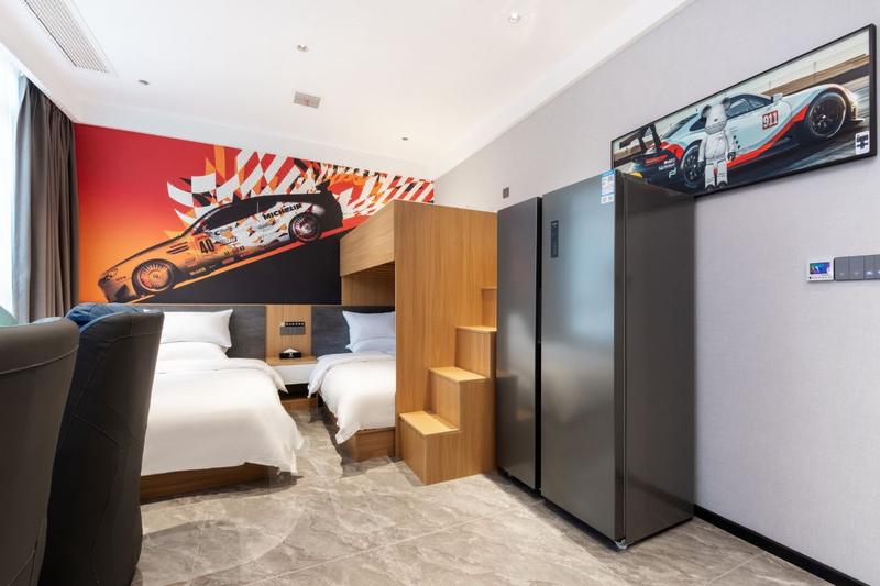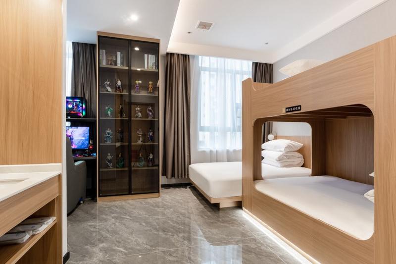 酒店坐落于科技城新区创业园街道八角中路8号倍特香槟华府一期2栋,以高端、时尚、青春、多样化、智能化为理念,丰富的配套设施为基础,全方位为客人提供优质的服务和舒适体验。酒店配置大床至六人间近十种房型,尽可能满足玩家的各类社交需求。全屋智能语音系统、专业电竞设备、中央空调、双开门大冰箱、24小时在线客服全天服务、24小时自助洗衣房、免费提供洗面奶、卸妆巾及创口贴、药箱、酒精等,满足您对理想电竞空间的所有幻想。在这里您可以足不出户,转过身便可随意选择近二十种各类饮料及零食。夜深了,当您略感一丝疲惫躺在床上的时候,您只需轻唤一声智慧管家,将房间调到睡眠模式,便可关闭一切灯光及窗帘。顺便让智慧管家将空调调至您喜欢的温度,享受一晚放松的深度睡眠......