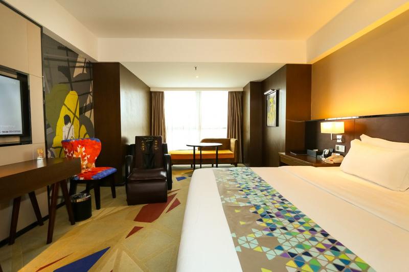酒店位于广元市利州区万缘路万达广场,周围餐饮、娱乐等生活配套丰富,出行便利;距广元市政务中心约700米,距离川北幼专约3公里,13路/29路都可直达(大约需要6分钟),离四川信息职业学院(雪峰校区)公交:13路/29路约2公里(大约需要5分钟),离万源新区政务服务中心约1公里(大约需要4分钟)公交:15路/16路/19路,交通便利。 酒店拥有时尚大方、温馨舒适的客房配备,房内设施齐全,酒店所有房间的床品都是按照***酒店的标准配备,24小时淋浴热水、空调,WIFI免费上网等设施供你舒适专用。 “智能客房+时尚元素+社交平台”,集时尚、音乐、美酒、智能一身的时尚生活舒适酒店,致力让多元时尚生活方式成为旅客出行的一部分。出行不止一面,Colorful Living!